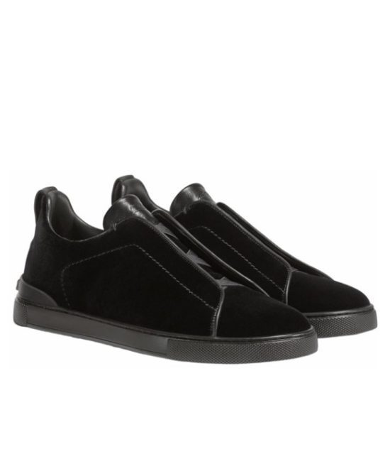Zegna Triple Stitch Casual Comfortable Versatile Low-top Sneakers Men’s Black